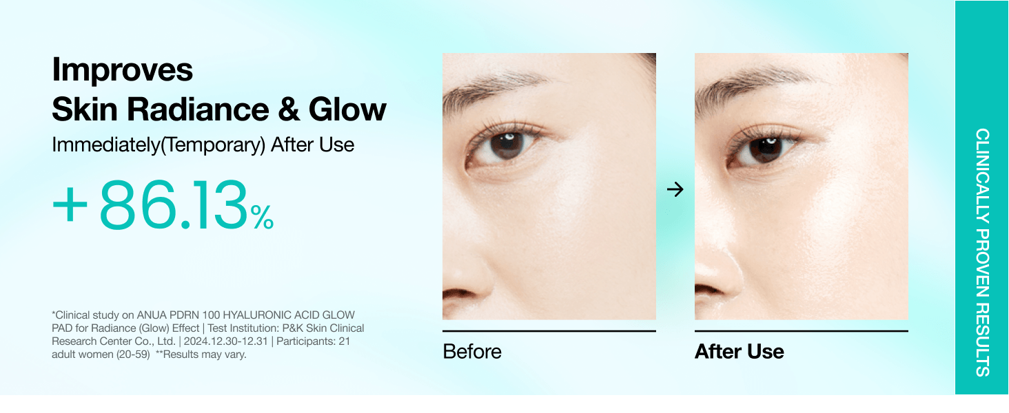 The Anua PDRN Hyaluronic Glow Pad is a multi-functional toner pad designed to deeply hydrate, repair, and enhance skin radiance.